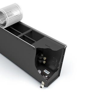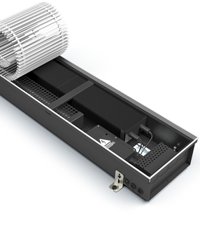 Корпус конвектора изготавливается из оцинкованной стали с высокопрочным порошковым покрытием черного цвета, причем изделие окрашивается полностью в объеме. Для влажных помещений изготавливаем корпуса из хромомолибденовой нержавеющей стали.