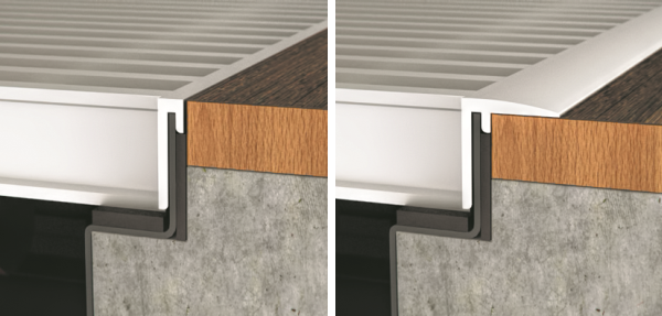 U – образный монтируется в стык с половым покрытием, а F – образный закрывает половое покрытие сверху. Тип бортика не влияет на стоимость изделия
