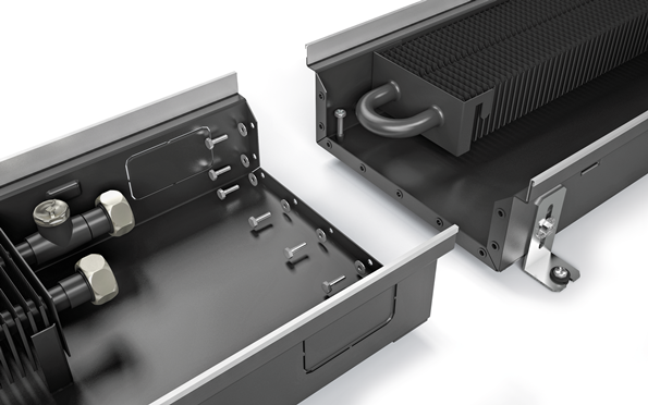 Для удобства транспортировки, конвекторы, длиной более 3 м, поставляются частями. Соединение между частями осуществляется через фланцы. По-умолчанию, конвектор поставляется с теплообменником в каждой части или, возможен заказ с единым теплообменником с быстроразъемными соединениями.