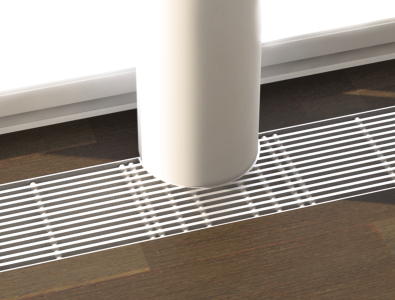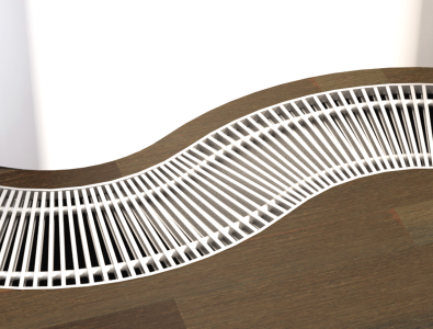 Между решеткой и корпусом конвектора мы укладываем резиновую полосу для избегания повреждения поверхности решетки, ее трения о корпус конвектора и шума при укладке и ходьбе по решетке.