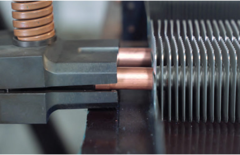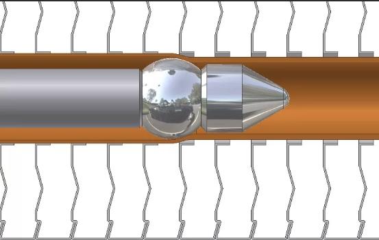 Дорнования теплообменника на вертикальном или горизонтальном прессе дорнами выставленными в определенной конфигурации в соответствии с геометрией пластины