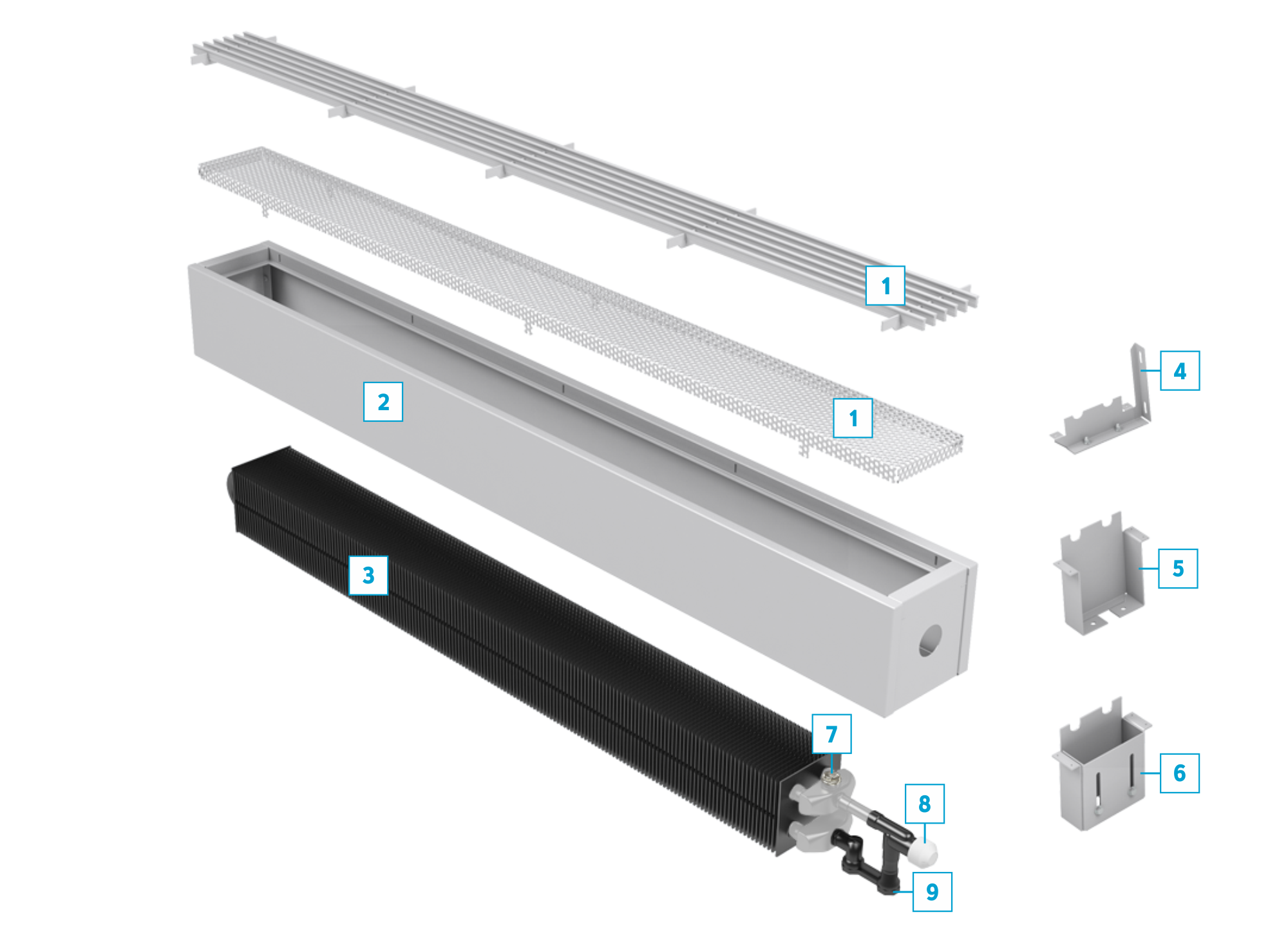 - перфорированная крышка, окрашенная в цвет корпуса конвектора для серии «Стандарт», или линейная решётка из алюминия, окрашенная в цвет корпуса конвектора для серии «Комфорт»;
