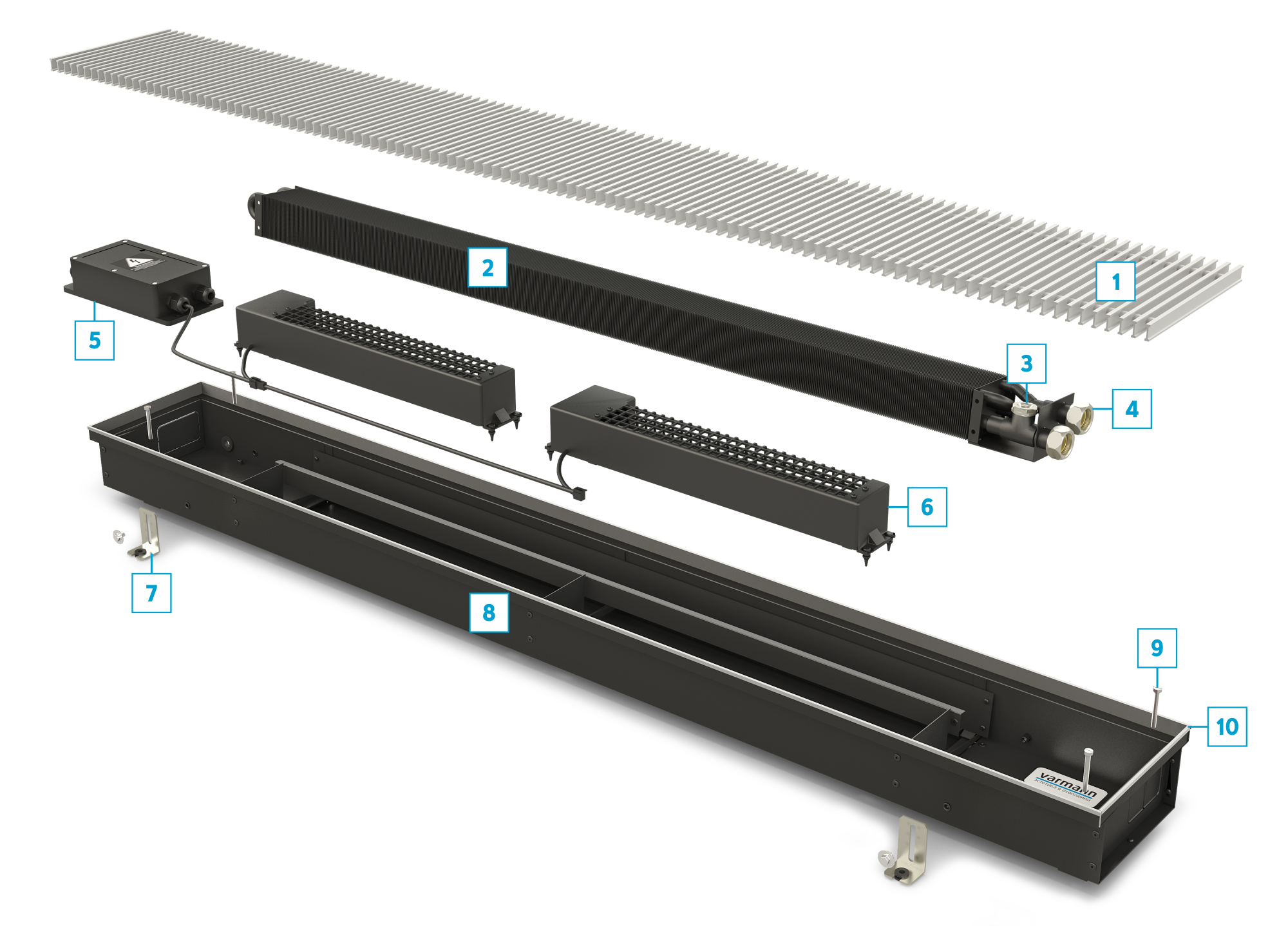 Корпус конвектора изготавливается из оцинкованной стали с высокопрочным порошковым покрытием черного цвета, причем изделие окрашивается полностью в объеме. Для влажных помещений изготавливаем корпуса из хромомолибденовой нержавеющей стали.