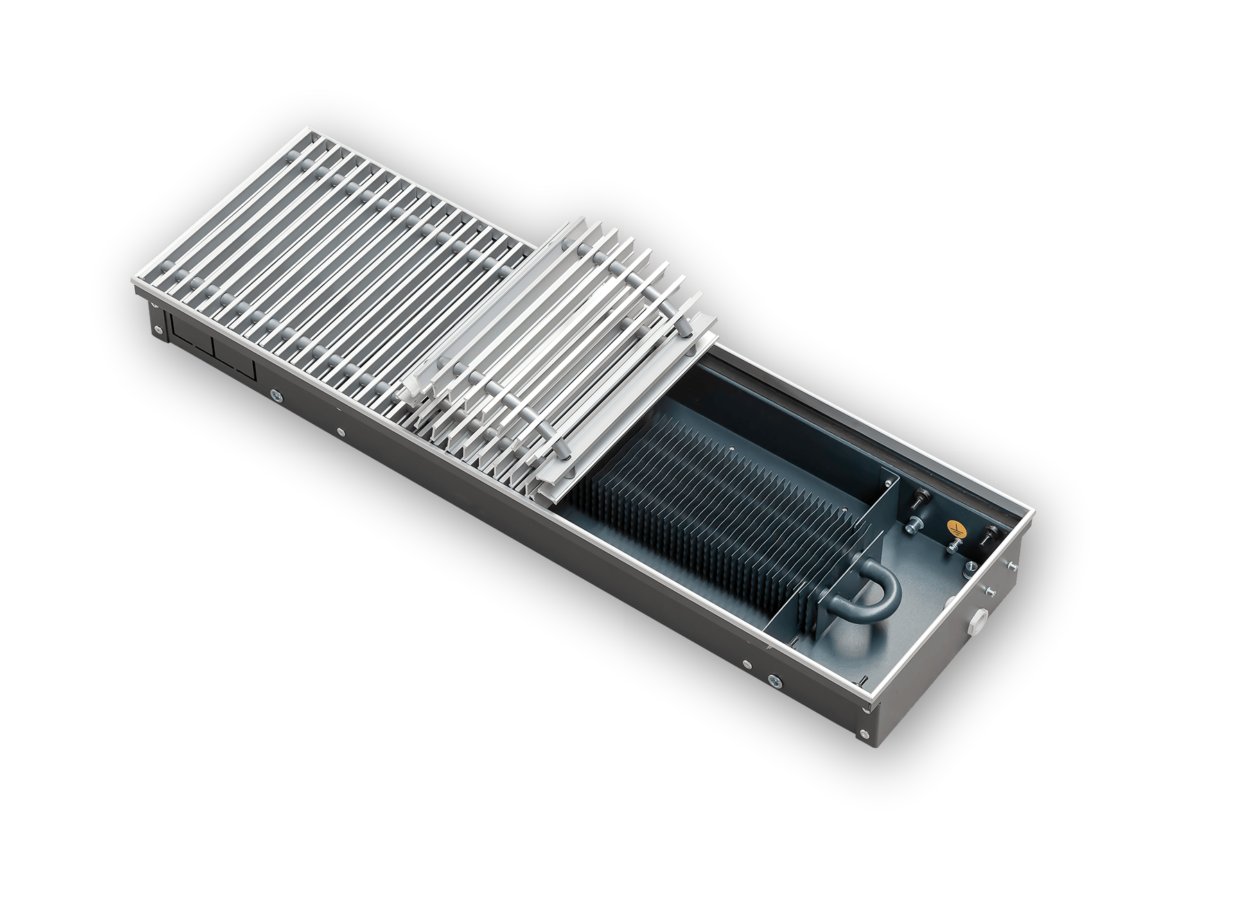 Встраиваемые конвекторы длиной до 2200 мм - цельные, конвекторы свыше 2200 мм состоят из нескольких секций.