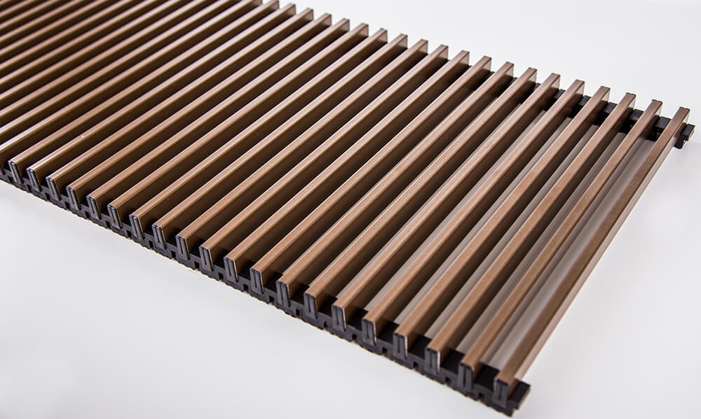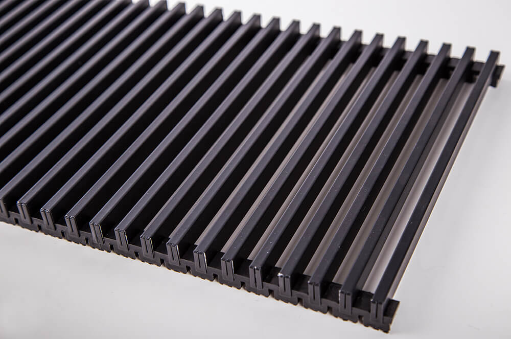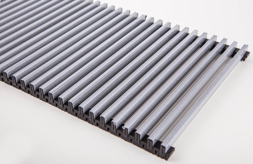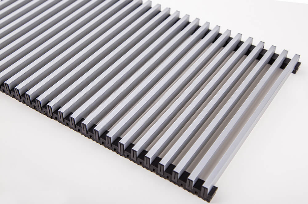 Решетка из алюминиевых планок и гибкой резино-пластиковой ленты