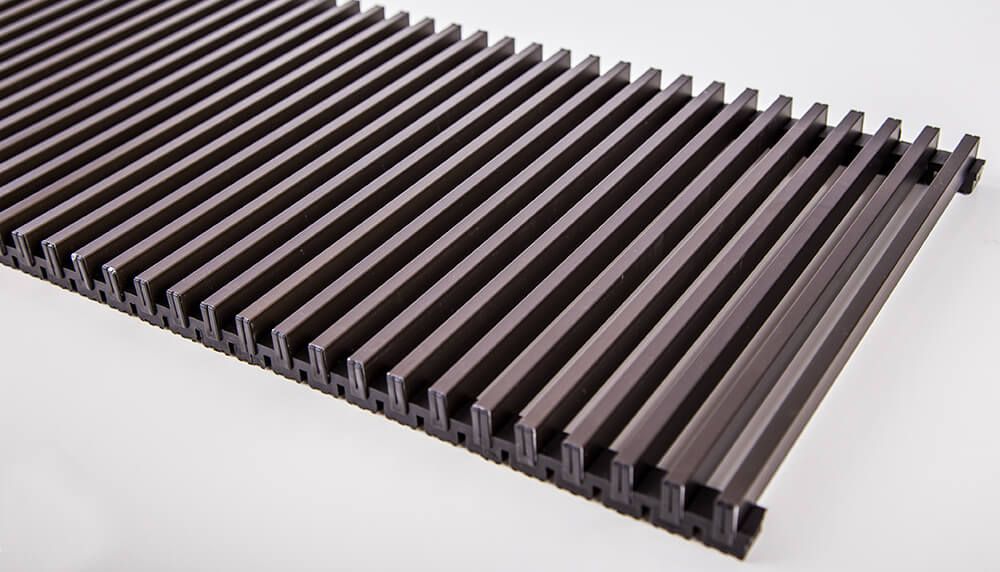 Решетка не шумит и не скользит при ходьбе, эстетична в интерьере и удобна в эксплуатации